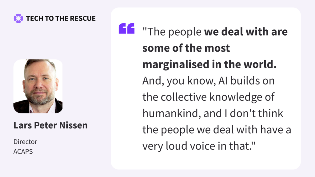 “The people we deal with are some of the most marginalized in the world. And, you know, AI builds on the collective knowledge of humankind, and I don’t think the people we deal with have a very loud voice in that.” he pointed out.