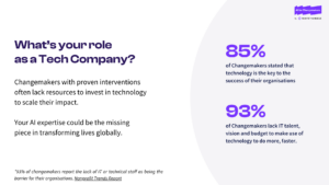 AI isn’t just about pushing the boundaries of technology, it’s about pushing the boundaries of what’s possible for humanity. In a world facing multiplying and escalating crises, what if your company could be part of the solution, making a real impact while growing AI capabilities?