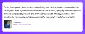 After the bootcamp, nonprofits participate in Pitch Days, where they present their AI-driven projects. It’s an opportunity to find the perfect fit regardless if your company is looking for a match based on skills, cuase, or just that good feeling about an NGO.