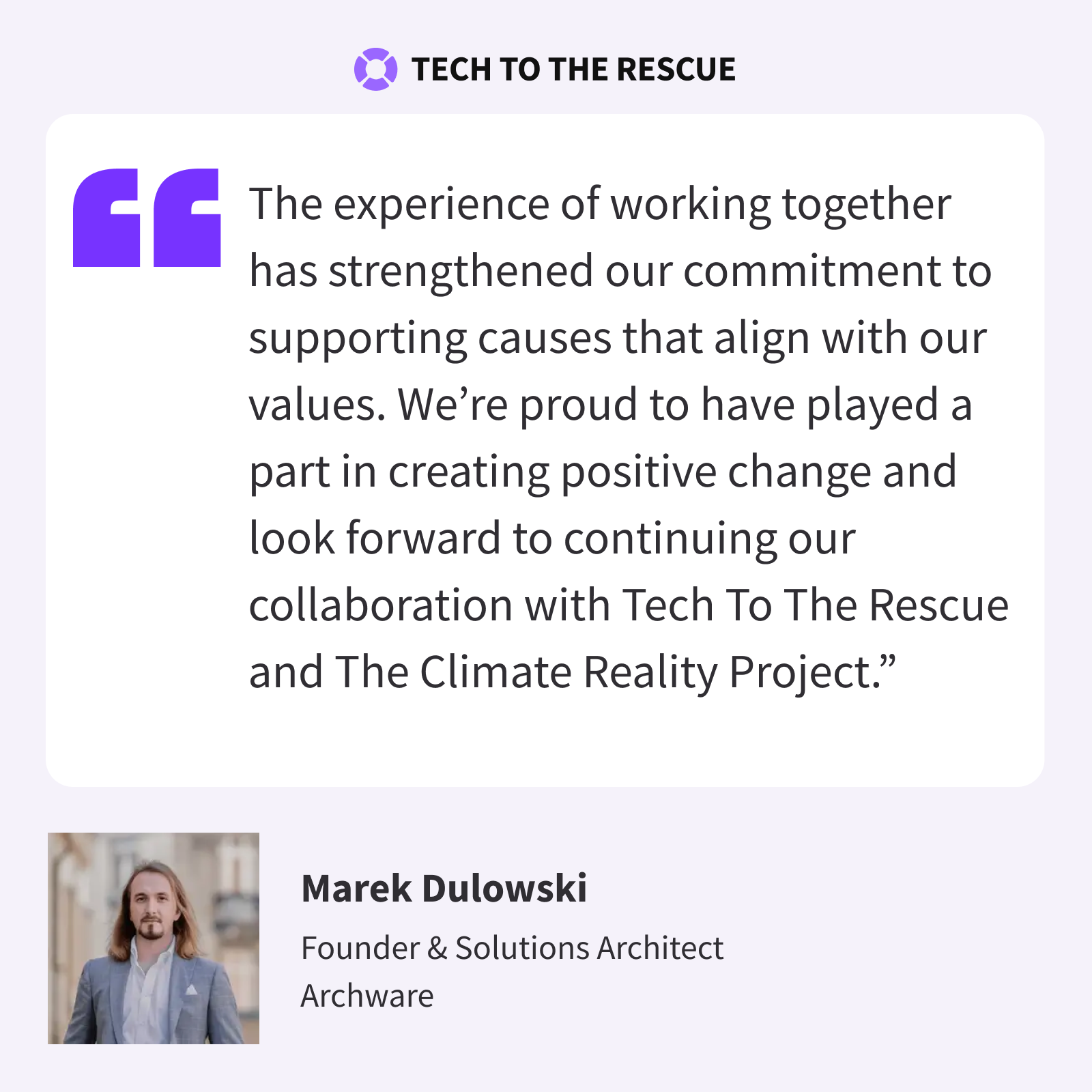 In the battle against climate change, collaboration is key. The partnership between The Climate Reality Project Europe and Archware facilitated by Tech To The Rescue, exemplifies the power of tech innovation to drive meaningful change, empowering activists to become catalysts for a more sustainable future.