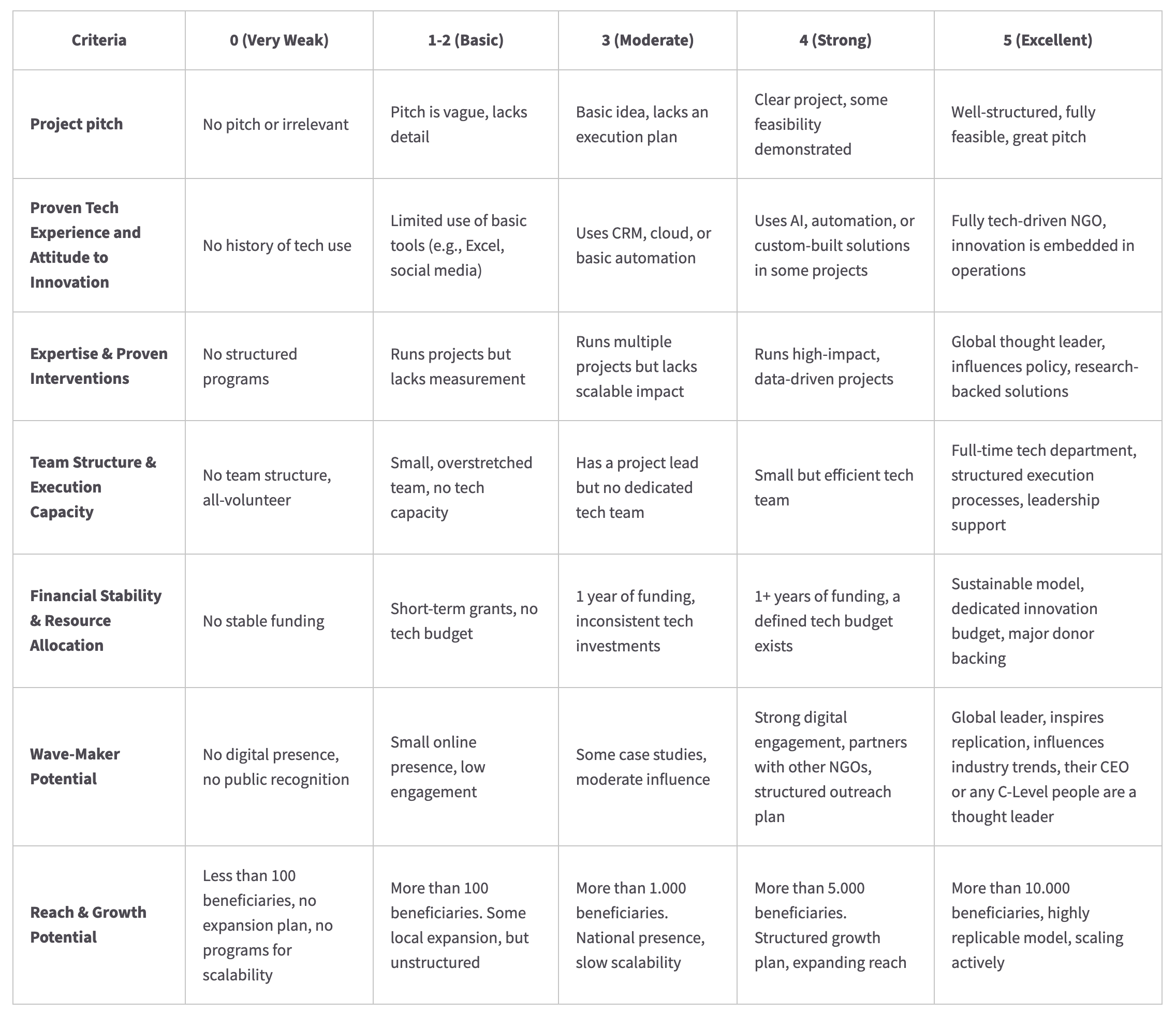 - Nonprofits will be accepted to join the Initiative depending on the number of points they obtain in the qualification process.